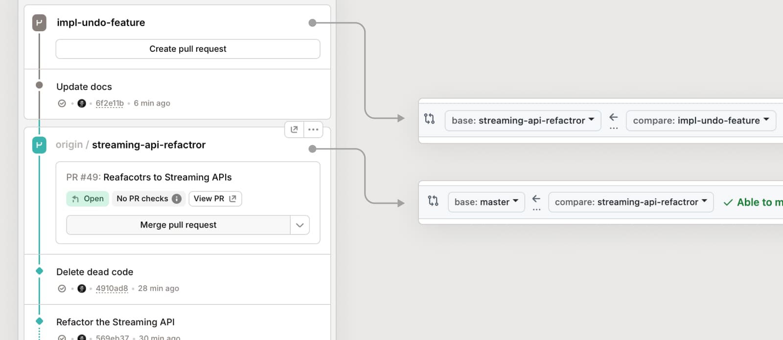 Create dependent branch stacks for reviewing and merging changes in sequence with stacked pull requests on GitHub.